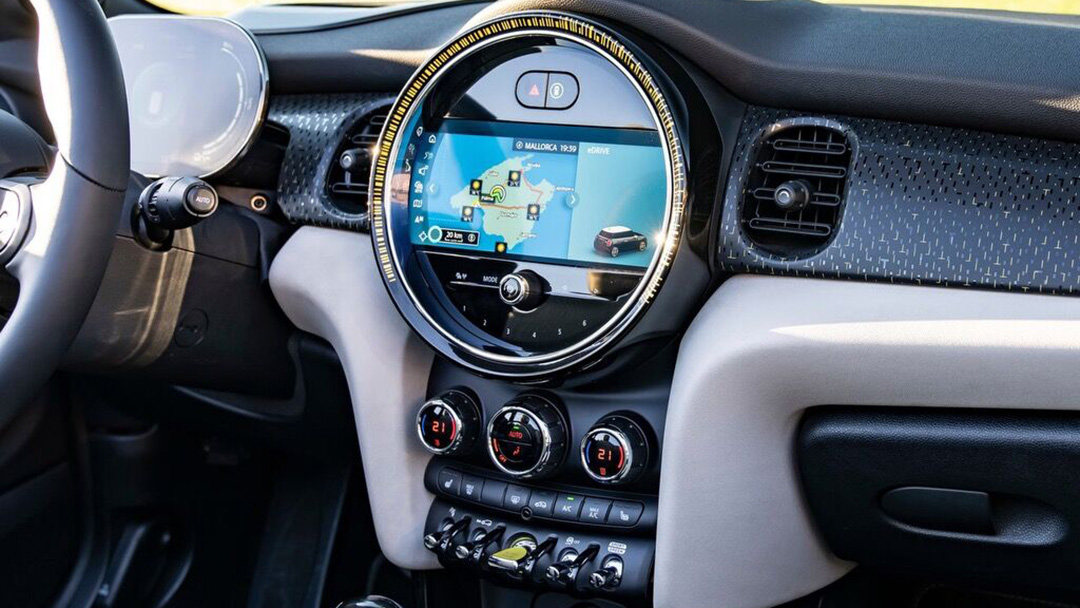 内饰方面依旧保持着MINI家族圆润可爱的设计风格,大量圆形元素的运用,保持了MINI那股熟悉的设计味道,其中在车机部分里面增加了部分新的设计UI图案。