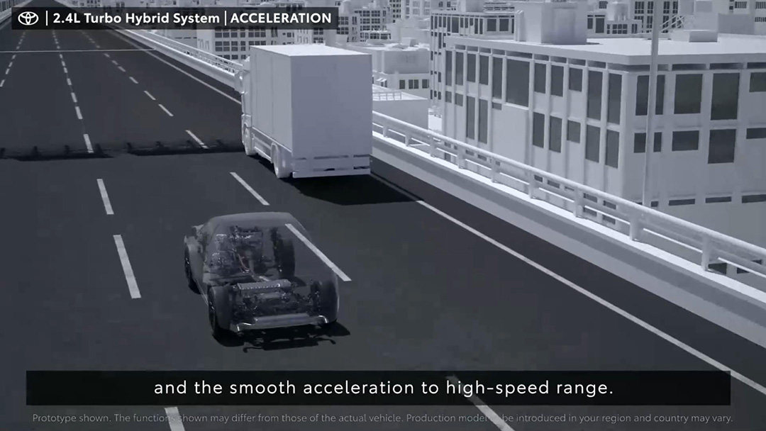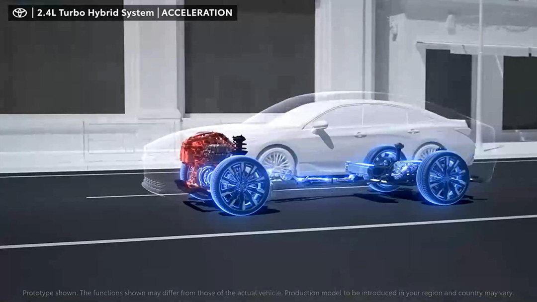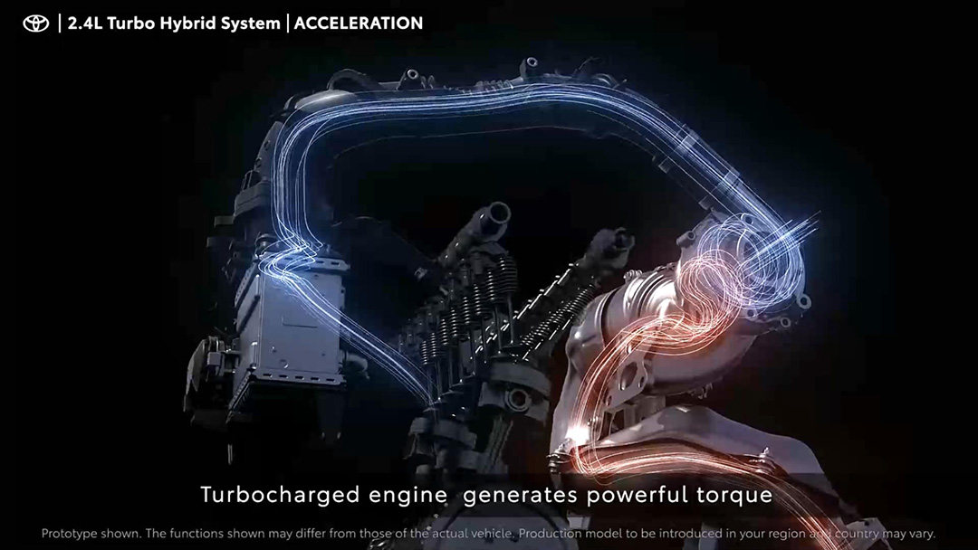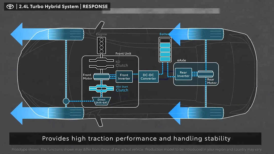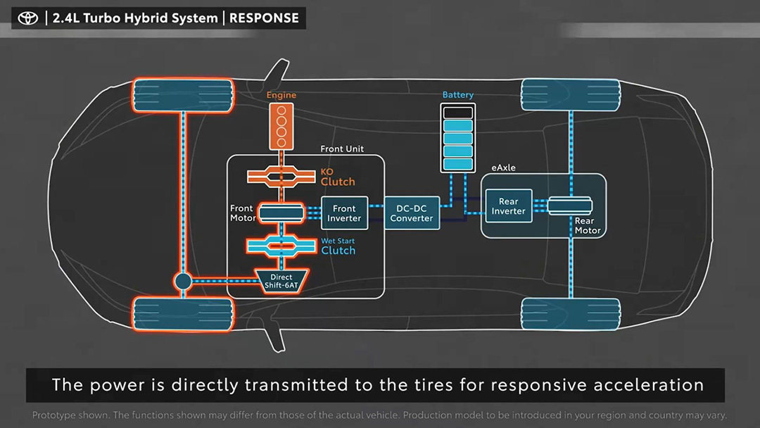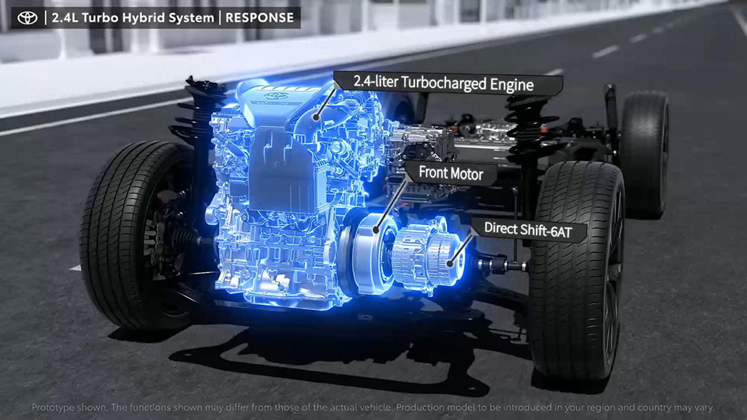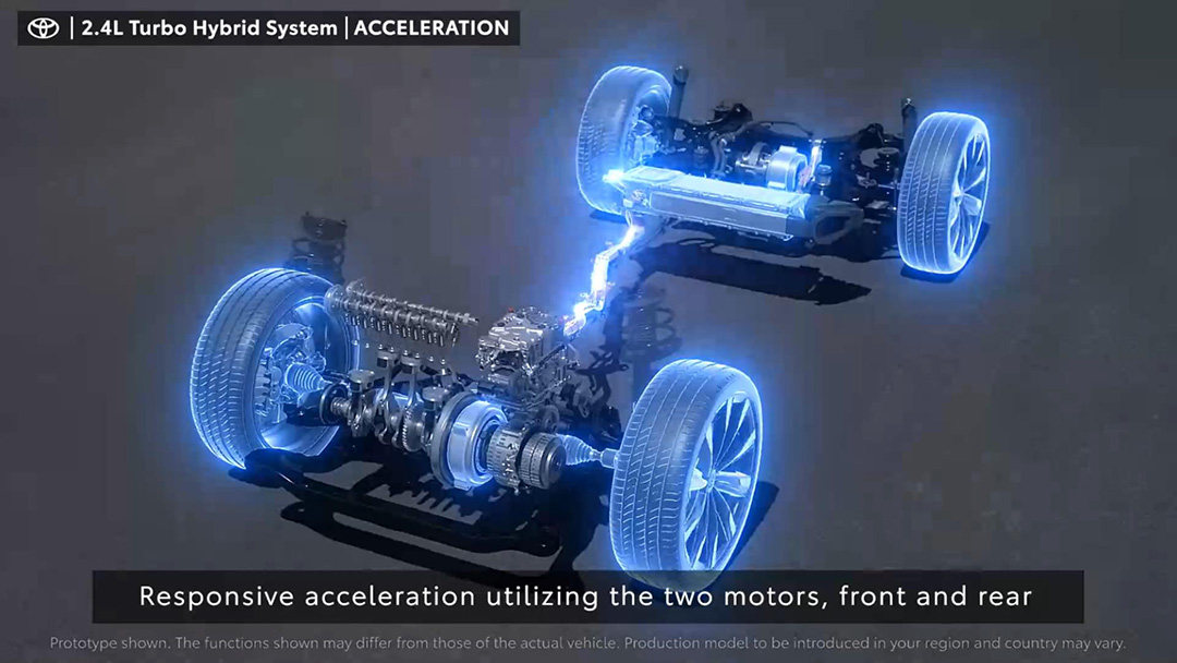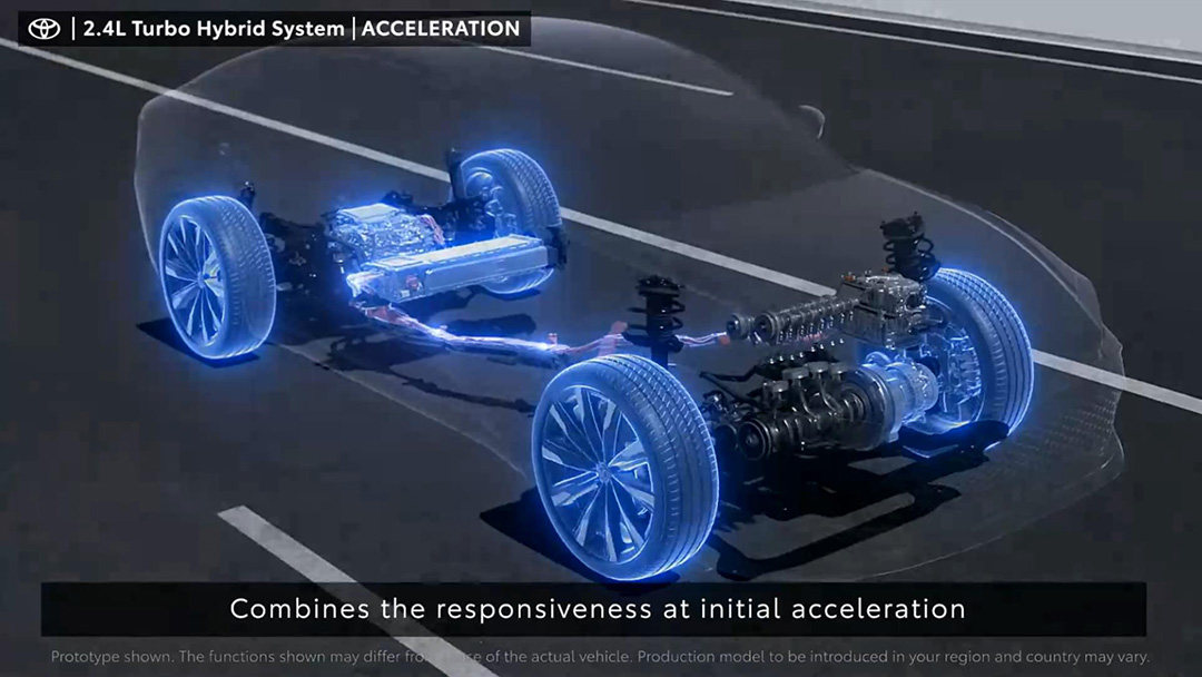 虽说丰田还没详细介绍具体两台电机的输出功率,但已知的是这一整套2.4T涡轮增压混动系统可以输出345Ps的最大功率。