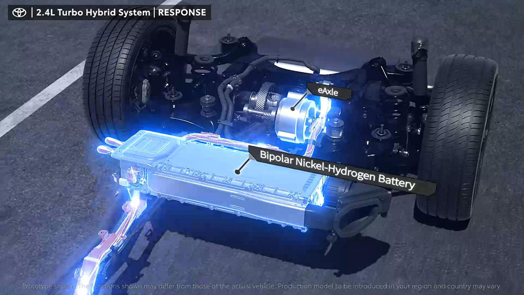位于后轴的则是一套高功率eAxle,也就是丰田E-FOUR四驱系统的核心装备,由具有快充快放特征的新款镍氢电池组提供电能,由后轴驱动电机实现四轮驱动效果。