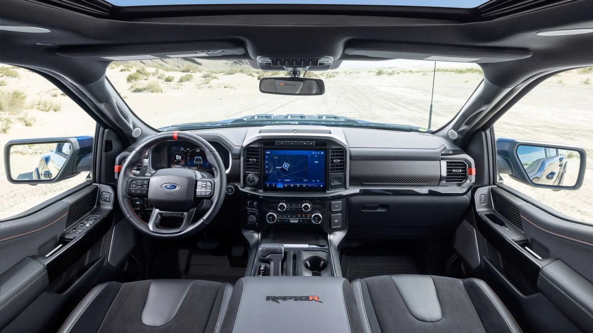 内饰也基本与福特F-150 猛禽保持一致。不过,方向盘和外后视镜的尺寸是要比基础款车型大上一号。