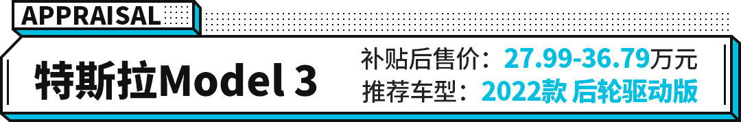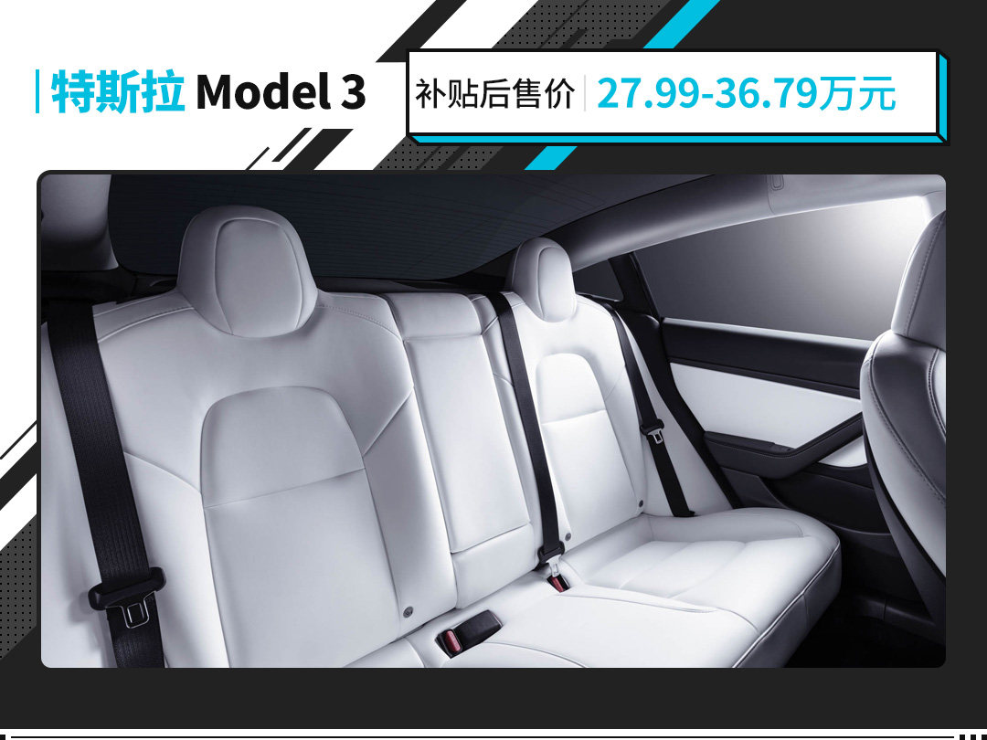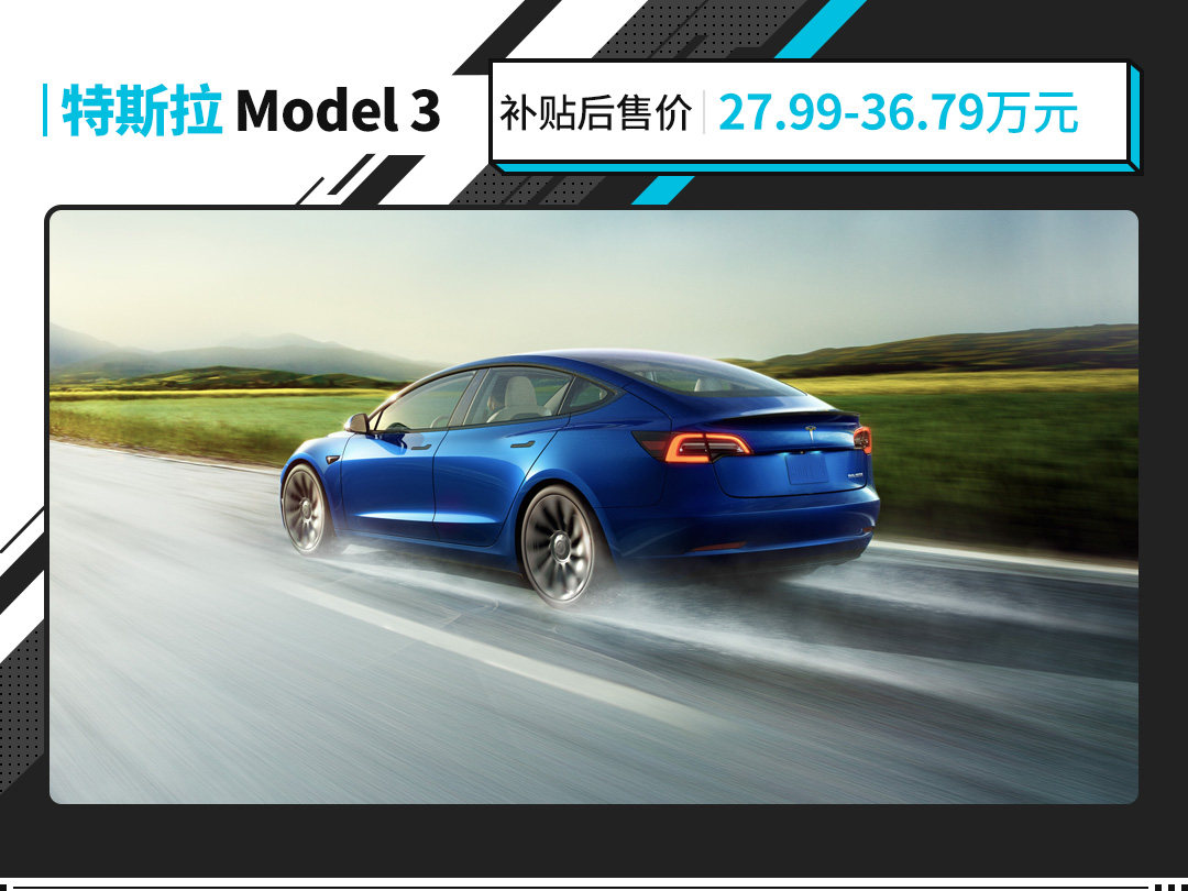 Model 3后轮驱动版动力上搭载一台最大功率为194kW、最大扭矩为340N·m的后置永磁/同步电机,可使Model 3在6.1s实现零百加速,放在同级别车型中属于中规中矩的水平;而搭载60kWh的磷酸铁锂电池,CLTC纯电续航里程达到556km。Model 3拥有相对不错的操控性能以及领先的驾驶辅助功能,而且也拥有数量相对较多的自营充电网络,使用便利性还是不错的;不过,556km的续航里程不算出色。