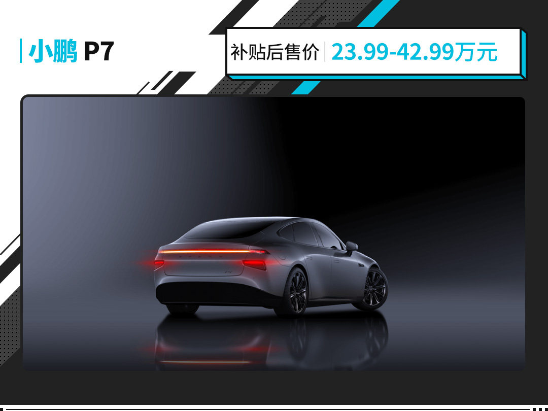 小鹏P7颜值颇高,整体来看,协调的车身比例、修长的前机舱、流畅的溜背造型以及极具科技感的内饰,很容易在第一时间打动用户,再加上出色的智能驾驶辅助能力、智能座舱表现以及30万以内出色的纯电续航里程,小鹏P7很容易得到潮流极客们的赏识。具体来看,全封闭前脸在意料之中,不过,弧形LED日间行车灯带以及多种“灯语”组合非常吸睛;而流线型车身和隐藏式门把手为其实现0.236Cd的低风阻系数做出了贡献;还有与车头呼应性很强的车尾,让觉得小鹏P7在设计上的确是“不走寻常路”。