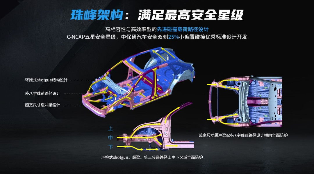 并且采用了超高强度笼式车身,整车高强度钢占比高达79%,车身扭转刚度接近30000N·m/°,达到了行业同级领先水平。