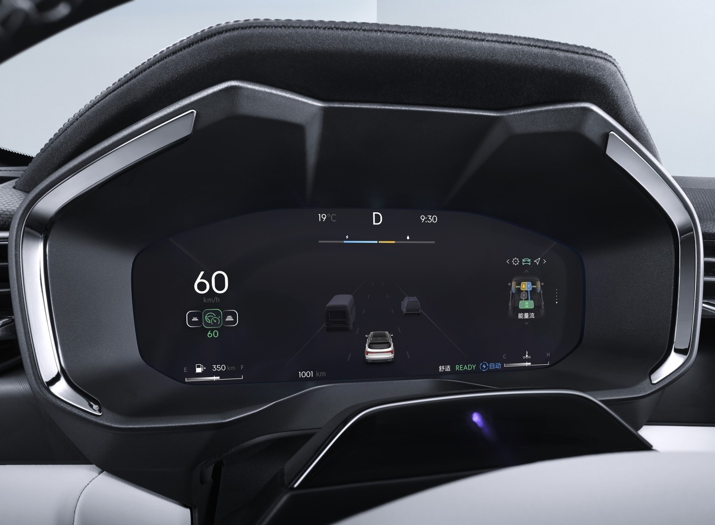 领克01 EM-F为了彰显出车内独特的科技感,通过高清智控三联屏布局(12.3英寸全液晶仪表盘、12.8英寸中央触控屏以及7.4英寸全彩W-HUD抬头显示),有效提升座舱便利性和趣味性。