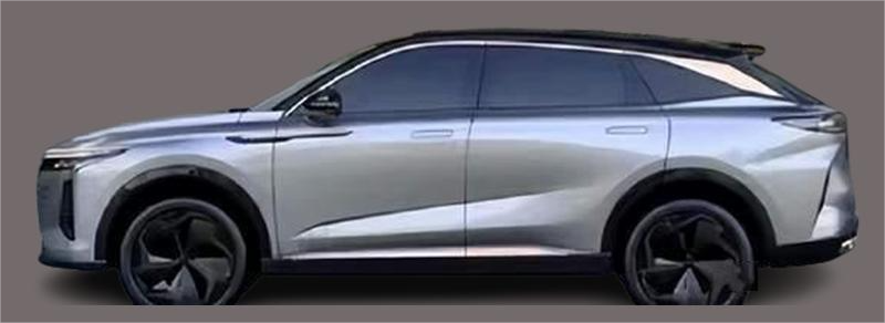 而来到车侧,整个车身十分的简约圆滑,相对低矮车身造型带上小溜背的设计,使得这款车拥有轿跑般流线型,腰线设计也十分干练,采用的也是隐藏式门把手和低风阻轮毂样式,新能源气息浓厚。