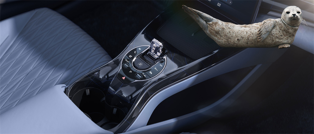 但细看可发现,其实内部一些细节上的设计也同样带有各种海洋的设计元素在内。比如,中控台处如海浪般舒展的线条、门板处类水滴状的门扳手设计以及扶手台如海豹销魂的腰部造型等等。