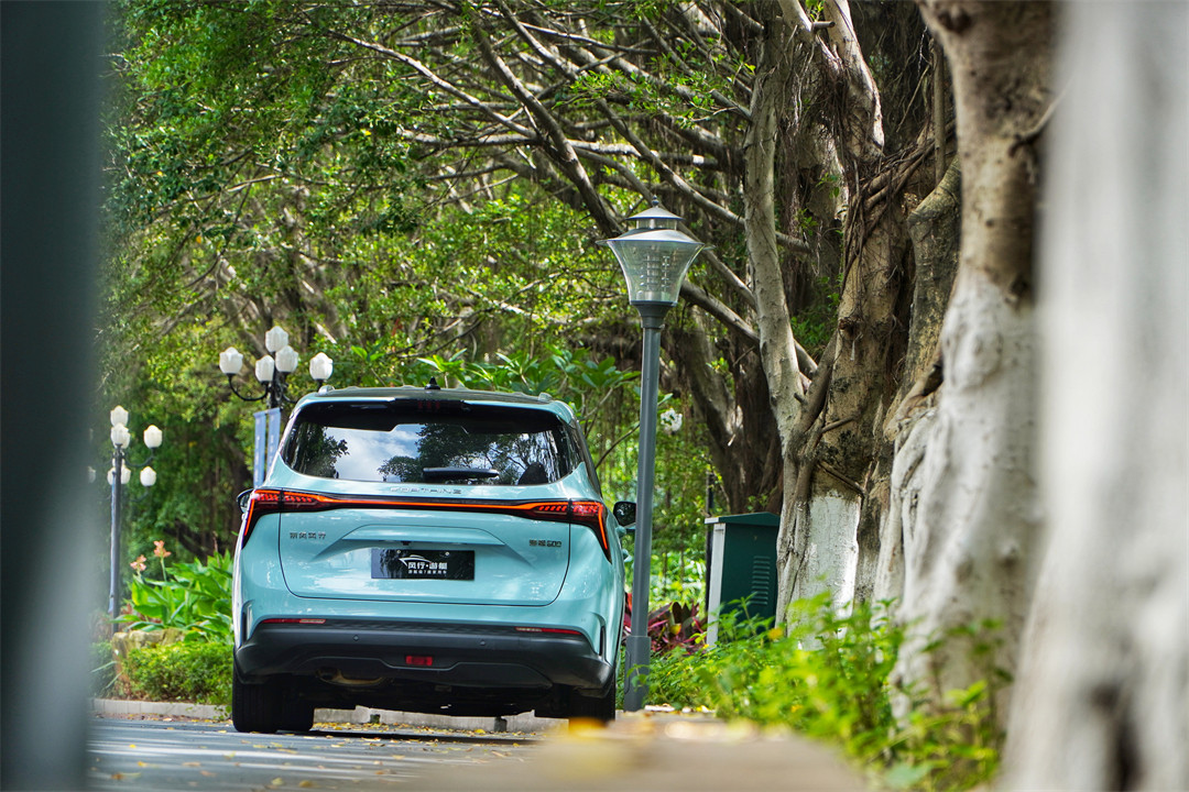 车尾的贯穿式灯带点亮后有着不错的细节效果,加上车顶的分段式尾翼造型和保险杠的中置雾灯,整体营造出了一定的动感。
