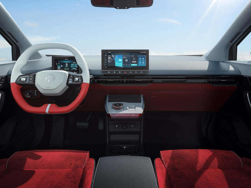 以电竞运动为灵感基调,MG MULAN采用红白双拼接色系突显出智能科技与运动竞技完美相融合的设计理念,流畅的型面设计以三区域布局彰显出内饰座舱智能科技的设计质感。