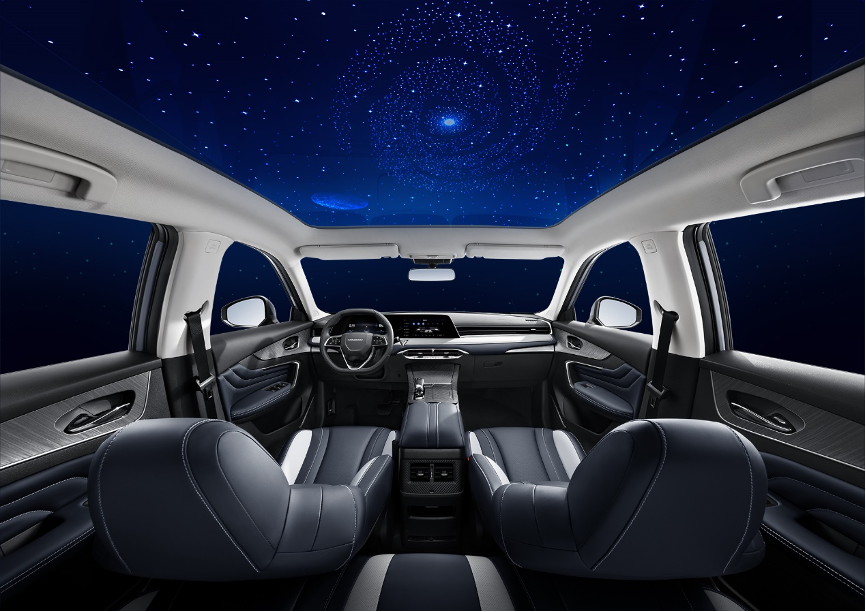 内饰上,1.7㎡超广角光感天幕带来无敌视角,星河天幕车顶氛围感拉满,为车内乘员打造一片属于他们的“星辰大海”,“马蓝星”看了都要连敲三下头盔。