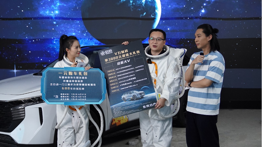 7月29日后,消费者到店购买启辰大V全系车型时,只需支付4000元加装费用,即可获得探月版车型;老车主同样可以到店将自己的爱车“升舱”为探月版车型,携手启辰大V开启属于自己的“宇宙探索”。