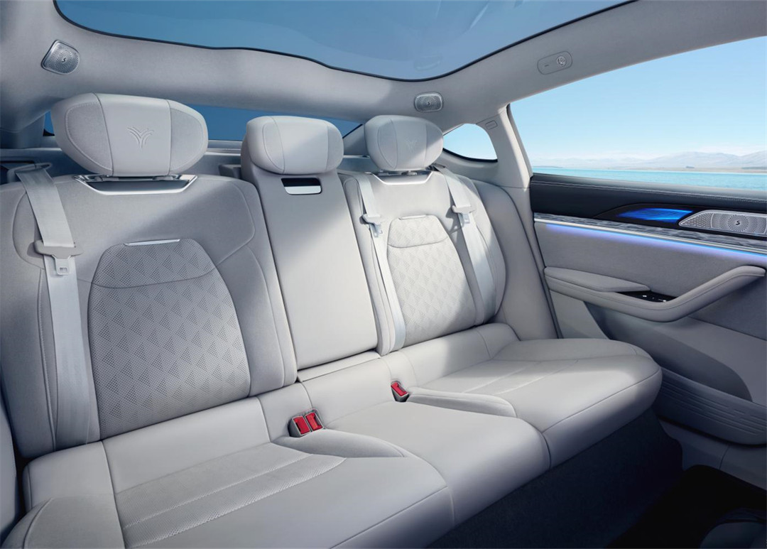 后驱纯电版和增程版车型0-100km/h加速时间为6.9s。后驱纯电版的CLTC续航里程为715km,四驱纯电版为650km,增程版的纯电续航里程为310km,总续航里程可达1160km。