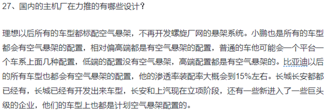 有意思的是,L9的空气悬挂供应商保隆科技在近日的交流会上表示,理想以后的车型都会标配空气悬挂。