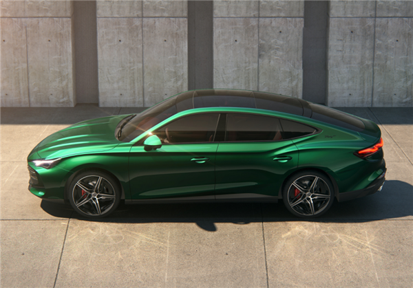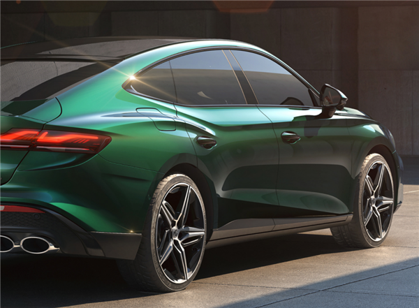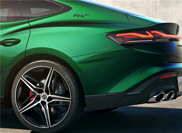 从外观来看,MG 7还真展现出很强的运动要素。首先有个凶猛的“大嘴格栅”,并配合上“怒视”的日行灯设计,尾部还有可升降尾翼以及唬人的四出排气。当然,把运动范拉满之余,还不缺优雅,可见其配备无边车门,涂装英伦绿车漆,还拥有“帕美”同款腰线。