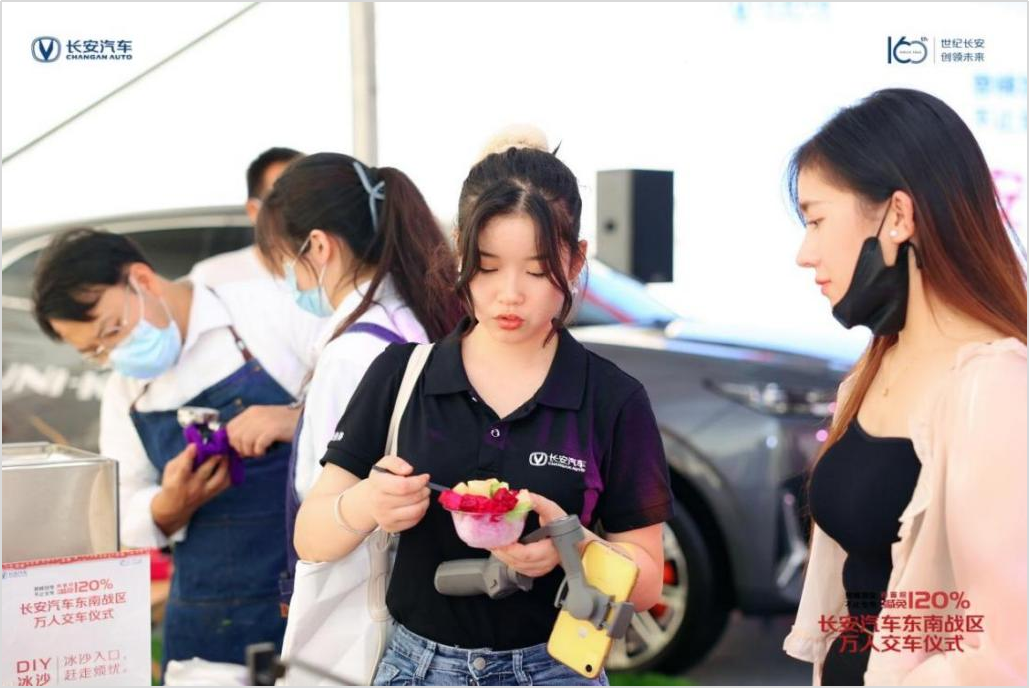 活动现场,长安汽车贴心地为媒体朋友和嘉宾朋友们准备了精美茶歇,而UNI-K iDD外放电体验、DIY冰沙体验和DIY折扇体验也为来宾朋友们带去了清爽冰凉的夏日乐趣!