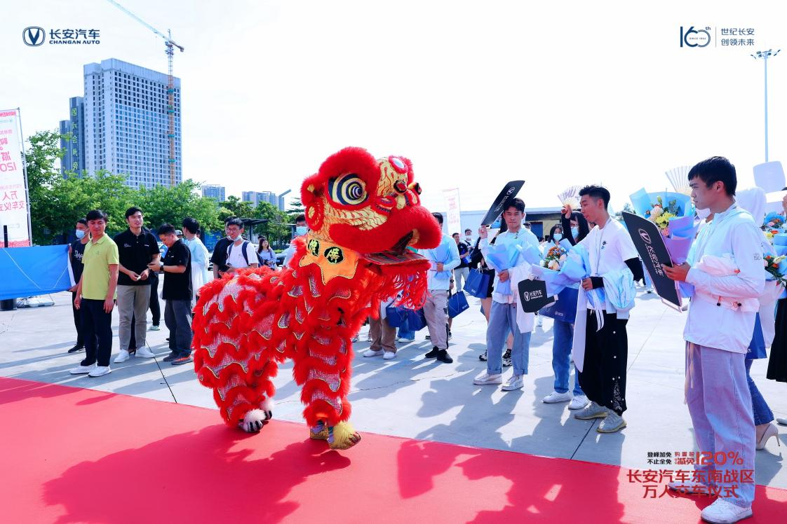 长安汽车把交车的仪式感拉满,准备了一段气势磅礴的舞狮表演,为新车主们带来了 “完美交车”体验,满足车主对生活“仪式感”的期待和向往。喜提新车的朋友们开心地合影留念,记录美好时刻。