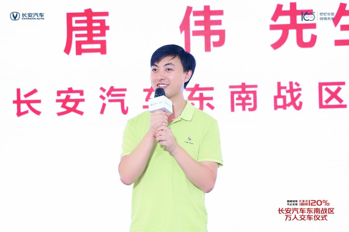 一段气势磅礴、精彩绝伦的舞蹈表演正式拉开了交车仪式的帷幕,长安汽车的长安汽车东南战区总监唐伟先生首先上台致辞,唐伟先生表示表示,在去年汽车行业的双重挑战下,长安汽车迎难而上,成为首个销量破2000万台的中国汽车品牌。站在长安汽车160周年的全新起点上,长安汽车将始终致力于终端研发,致力于车主服务。同时,长安汽车也计划将全域产品提速,尽快将更多的品质好车呈现在顾客面前。最后,长安汽车东南战区总监唐伟先生传达了对新车主们诚挚的祝福,祝愿车主们提车顺利,生活红火!