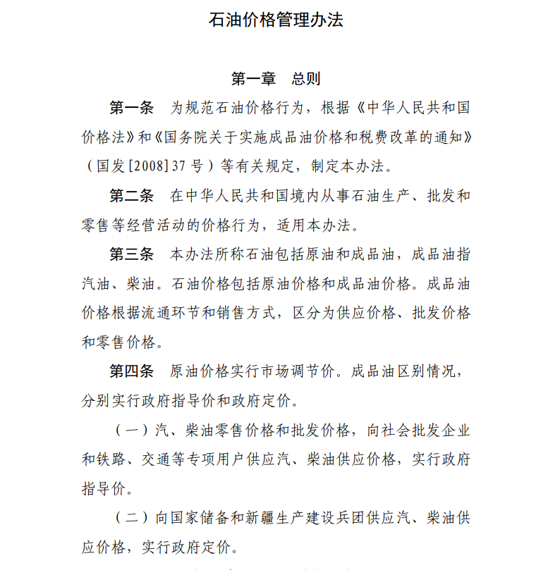 其次,我国的油价还因为国际油价的涨跌分别设定了上限下限,也就是所谓的“天花板价”和“地板价”。当国际油价高于130美元/桶时,国内汽柴油最高零售价不提或者少提;当国际油价低于40美元/桶时,国内汽柴油价格不降低。这也是我们经常能够看到我国油价“跟涨不跟跌”的主要原因。
