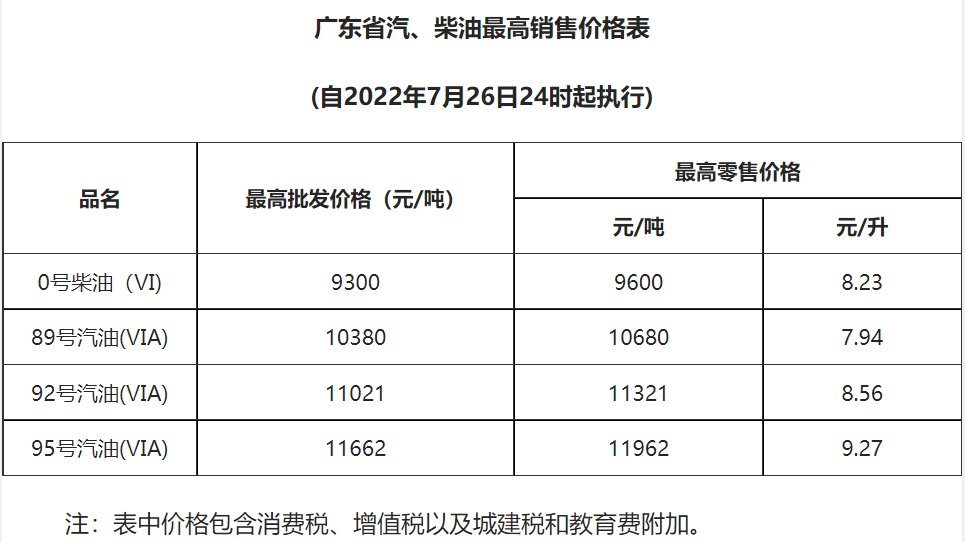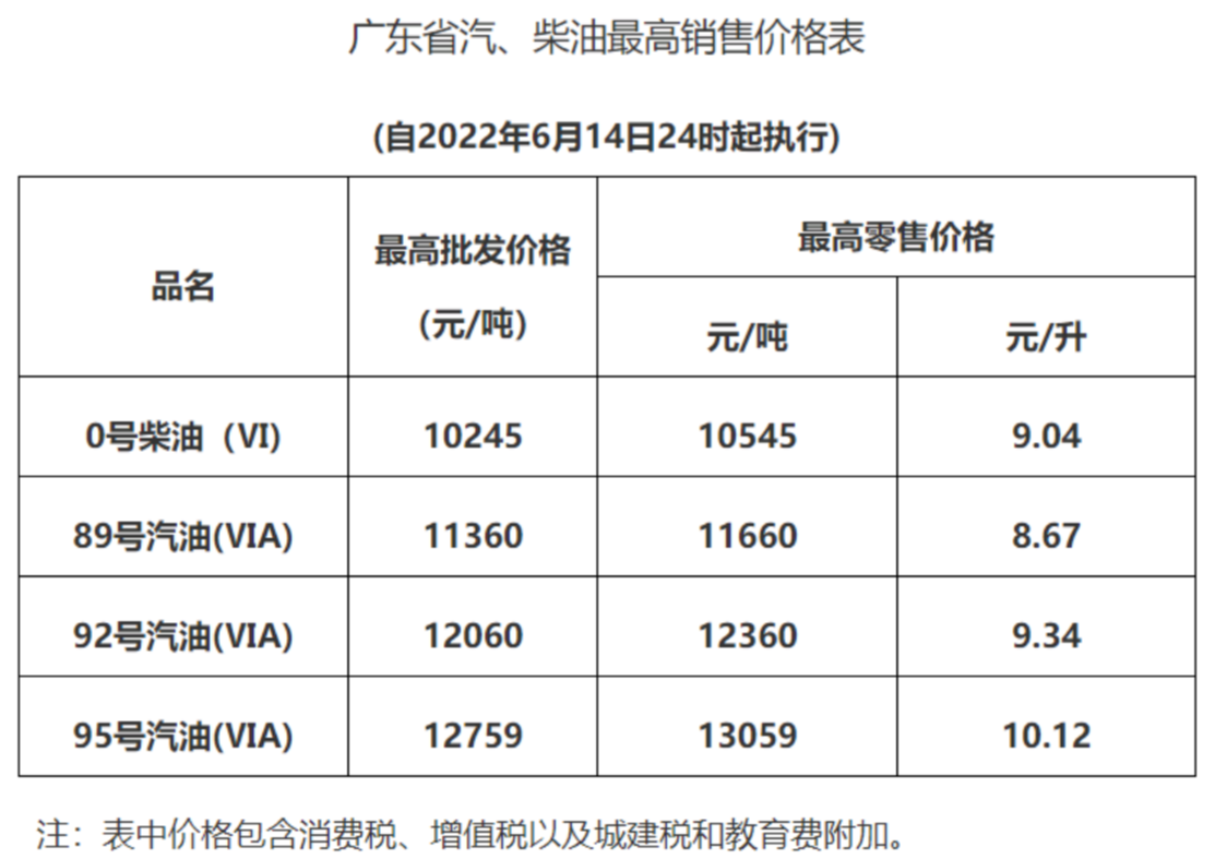 今年1月17日,我国对成品油价进行了第一轮调整,当时广东省92号汽油油价为7.44元/升,95号汽油油价为8.06元/升。截止到目前,今年我国成品油价格最高的时间节点为6月14日,当时广东省92号汽油油价高达9.34元/升,95号汽油油价更是突破了10元大关,达到了10.12元/升。