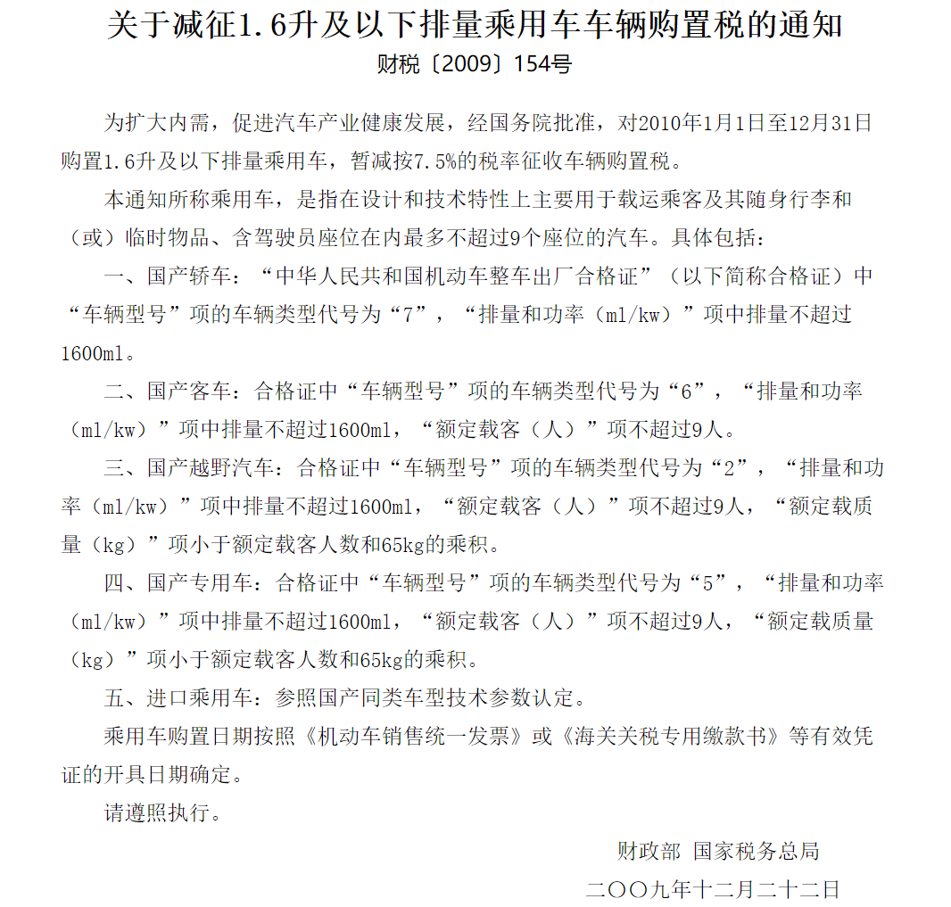 早在5月31日,财政部和税务总局就联合颁布了一项利好传统燃油车的重要政策——《关于减征部分乘用车车辆购置税的公告》(以下简称“公告”)。在教授看来,这既是我国第三次实施减征车辆购置税政策,又是涉及车型最多的减征购置税政策,同时也是消费者能够享受得到的最后一次购置税减征政策。
