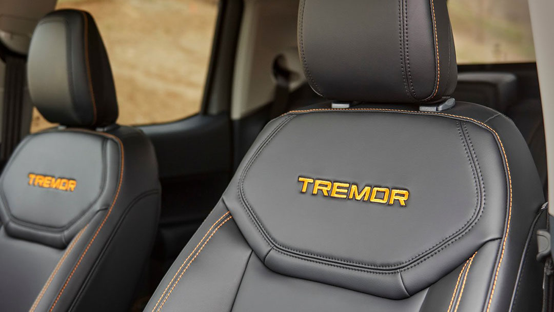侧面和尾部变化不大,在货斗的侧面拥有一个橙色的“Tremor”字样标志,强调了新车的身份,整个车尾维持了和大哥们相似的设计,圆滑的尾部设计添加了一丝城市的气息。