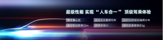 为给用户创造超级性能体验,星云系统化平台实现了运动豪华车型追求的整车重心低、前后左右载荷均布、50比50的前后轴荷分布,带来“人车合一”的顶级驾乘体验,可以实现毫秒级电制动,最短制动距离约32米;转弯半径小,3100mm轴距的中大型车转弯半径仅为5.4米,带来堪比紧凑型两厢车的灵活操控体验;接近1g的侧向加速度,提供超高极限操控稳定性,享受超过高性能燃油车的驾控体验。