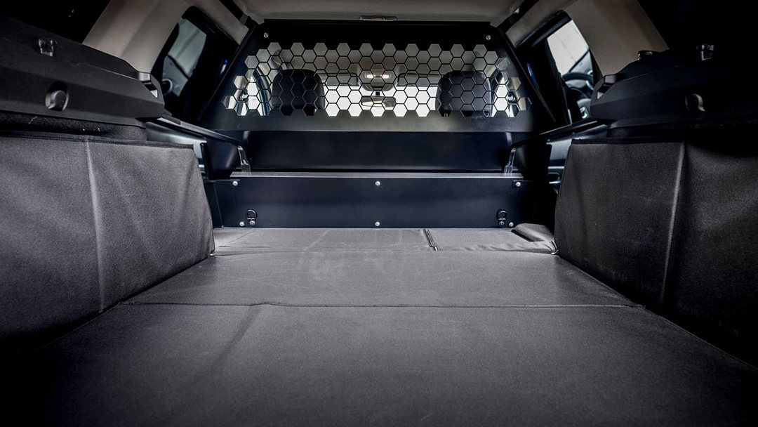 从官图中可以看到,因为没有配备后排座位,所以整个后排都覆盖了一层耐磨材料,并且在前排的后方增加了挡板,使得整个运货的过程能更加安全稳定,车厢拥有高达1623L的装载空间和503公斤的有效载荷。