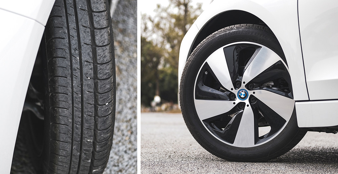 诚然,为了降低能耗、增加续航,i3配备四条以降低阻力为目的的特供轮胎,胎宽只有前155,后175,抓地力表现确实一般;。