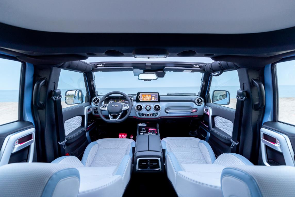 你能想象将海风蓝BJ40刀锋英雄开进沙漠是一种什么感受吗?试想一下,在干旱燥热的沙漠,望见清新的“海风蓝”,一股清凉风扑面而来,燥热瞬间消散。新款BJ40刀锋英雄版新增哑光海风蓝配色,充满了清爽、自然的气息,就算置身于车水马龙之间,也能不经意间就会驱走心中的烦闷。并且新车还加入了更多专属探月标识,带来了无与伦比的自豪感。