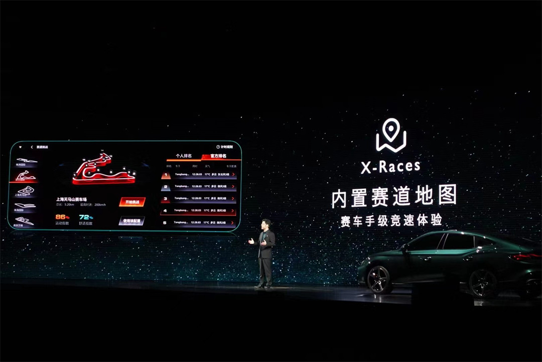 X-mode竞速模式的按键设置在了方向盘上,系统可以个性化设定驾驶模式,并且内置了赛道地图和排名,满足用户跑赛道的需求。