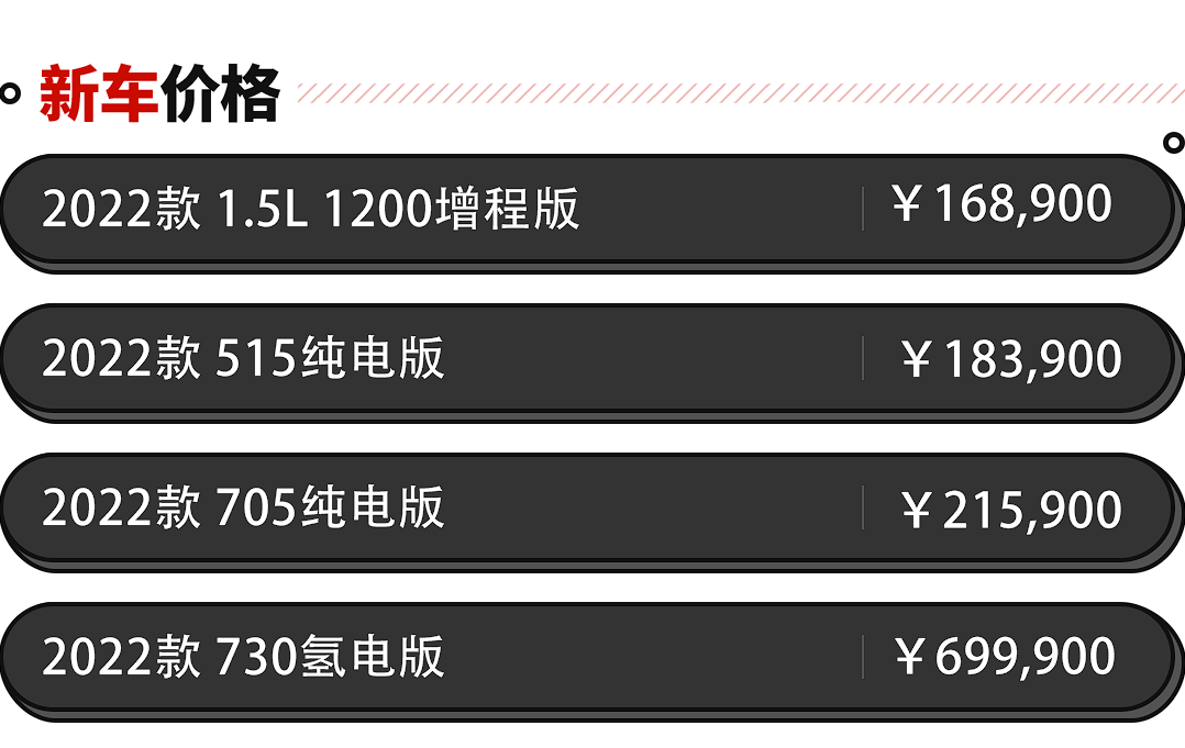 作为长安旗下全新新能源汽车品牌的开篇之作,长安深蓝SL03一共推出了纯电版、增程版、氢电版三种能源形式,4款配置版本车型。其中,增程版和纯电版作为主销车型,它们的售价区间为16.89万-21.59万元,氢电版售价为69.99万元。