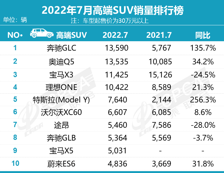 尽管面临换代,但现款奔驰GLC依然“宝刀不老”,在7月斩获13,590辆的好成绩,同比增长135.7%,成为当月销量最高的豪华SUV。而奔驰GLC还能有如此出色表现,一方面是其产品力很强,无论是外观设计还是整体内饰布局依然不过时,至少在教授个人看来,对比宝马X3和奥迪Q5L等同级别车型还是要更豪华一些。