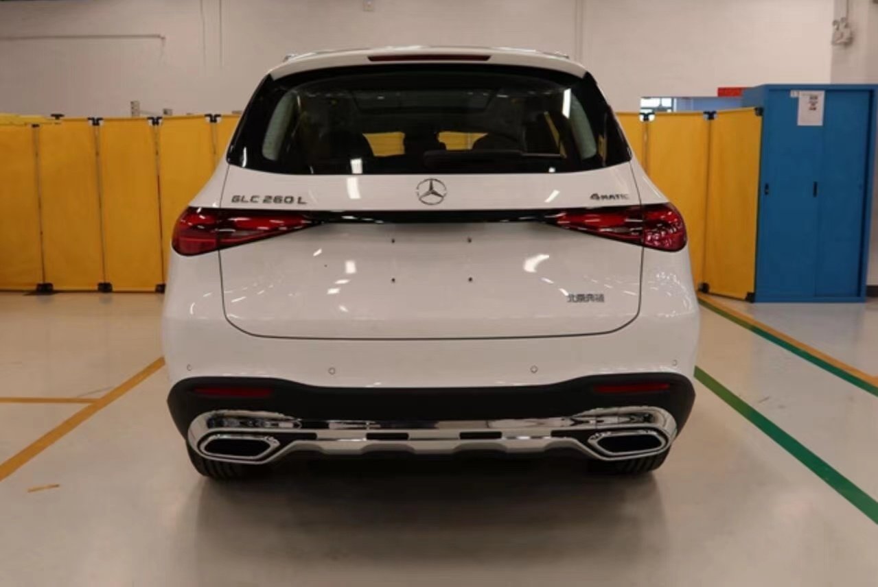 车尾部分,主要针对尾灯进行了调整,采用了奔驰C级和S级同款扁平化设计风格,并且由一条黑色装饰条连接,营造出贯穿式尾灯的视觉效果。底部配备了双边单出的排气布局,进一步提升运动气息。