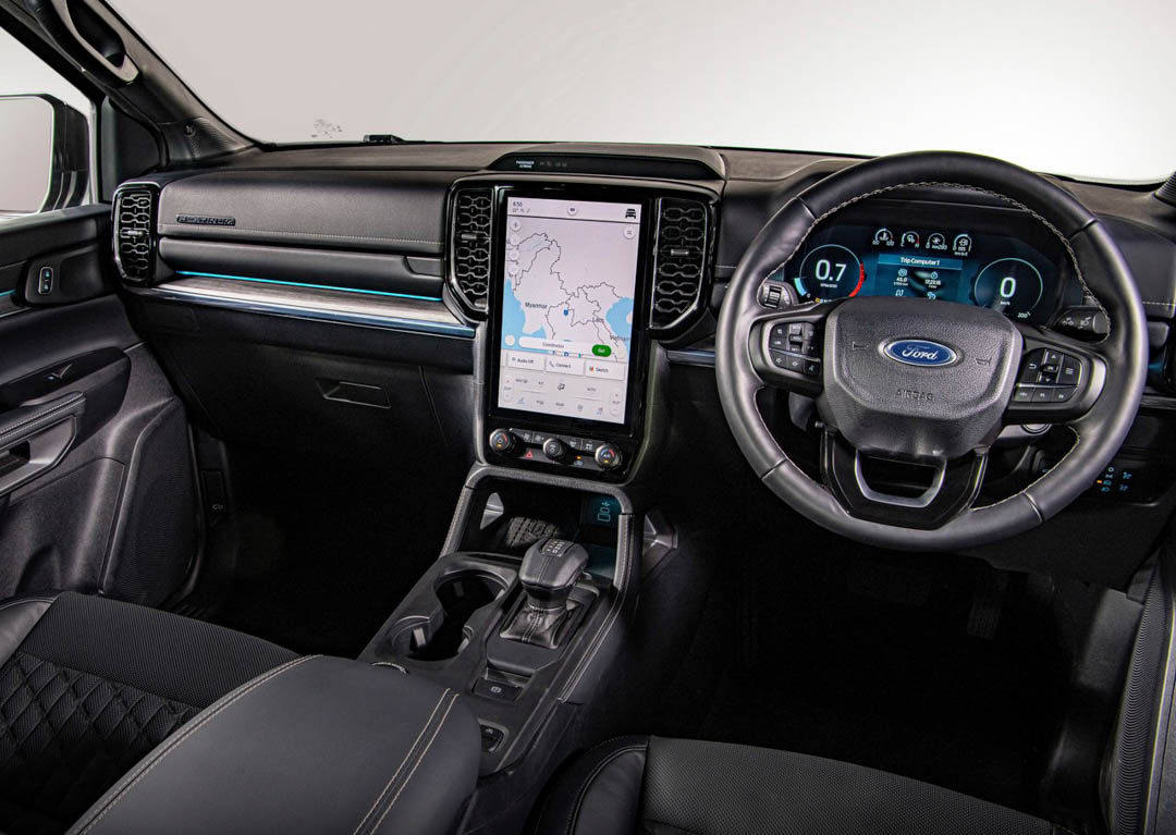 把目光转至于内饰部分,可以发现新车的中控台与福特Ranger基本相同,以更多平直的线条所勾勒出来,在银色饰板的映衬下,有效提升车厢内的质感。