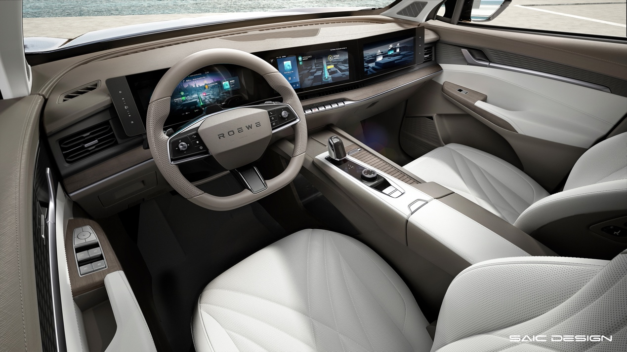 荣威RX9以匠心做工、自然格调打造奢享车内空间。经典环抱式布局内饰,搭配47英寸贯通屏、战舰式中控、幻境氛围光等设计,为用户营造出旗舰车型五星级舒享氛围。