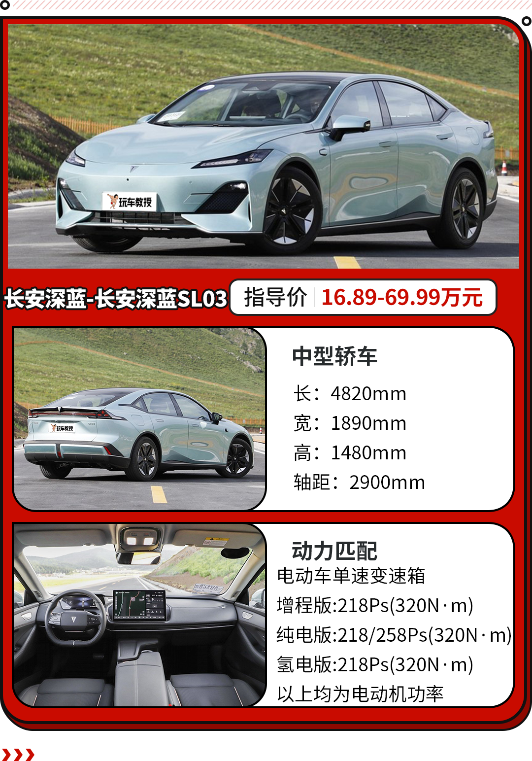 混合动力市场除了比亚迪持续发力之外,长安汽车也没闲着,2022年7月,长安深蓝旗下全新轿车SL03正式上市,16.89万元的起售价,直接把增程式混合动力车型的门槛拉低到17万以内。并且长安深蓝SL03还采用后轮驱动,同样把后驱中型车的门槛降低到了17万元以内。