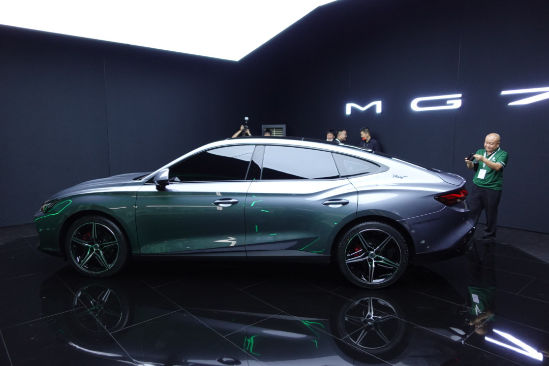 而除了以上这几款车型,还有一款车是教授要隆重介绍的,它就是新一代MG7,新车在公布官图之后,其外观造型就深深吸引了教授,包括激进的前脸设计、溜背式车身造型、优美流畅的车身线条、五幅式大尺寸运动轮毂、无边框车门、贯穿式尾灯、分段式电动尾翼和四出排气等等。