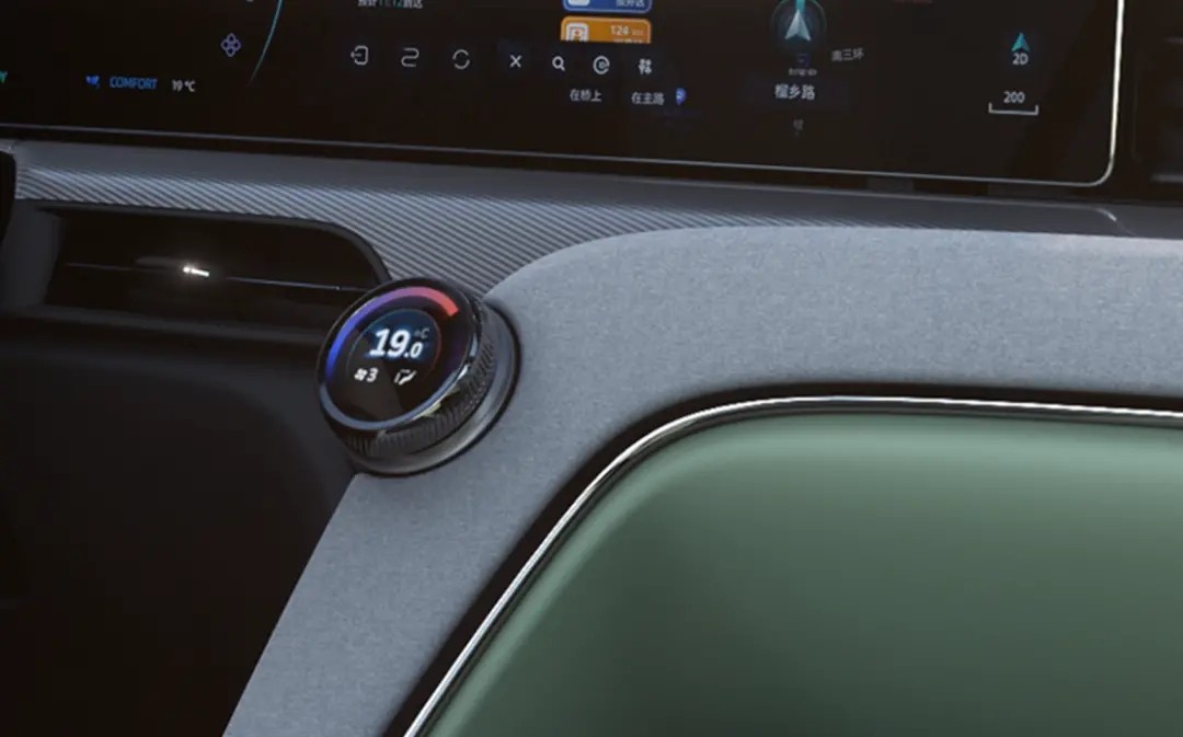 整个内部座舱最为吸睛的还有全球首创i-rota超级表盘和i-Surf 科技皮肤。是不是觉得概念很新?其实i-rota超级表盘就相当于一个中控旋钮控制器,只是它采用智能手表表盘设计,能提升美观之余还可实现音量、调节空调温度等控制。