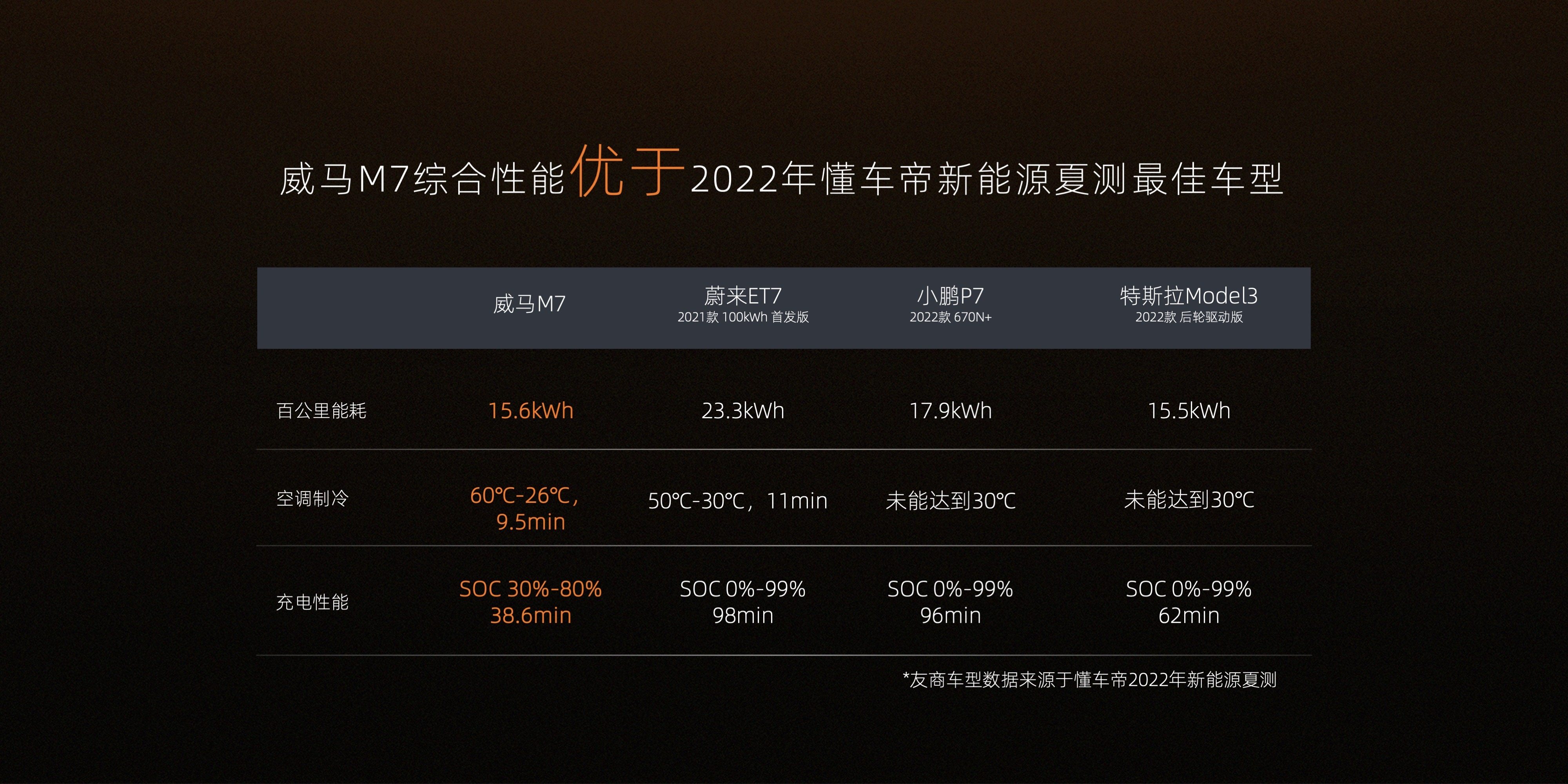 因为威马M7在极端环境温度从-45℃至60℃的“春夏秋冬”四季,平原到高原海拔落差近4800米的整车标定和实测中,是交给出百公里能耗15.6kWh、充电从30%至80%仅38.6分钟,车内温度由60℃降至26℃仅9.5分钟极佳成绩,表现出高度的可靠性。