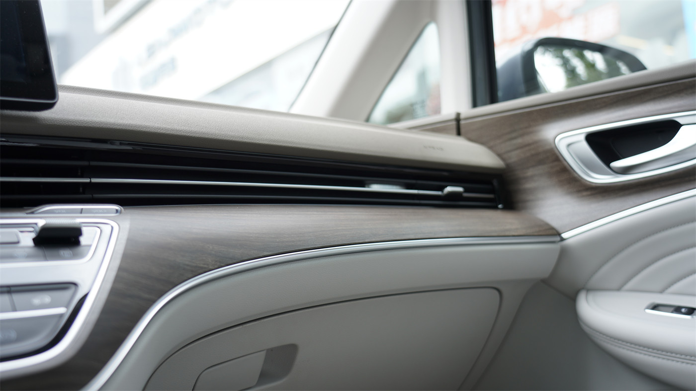 内饰的环抱式座舱就直接拉满温馨的居家感,让你身临家一般的体验。而且为了视觉感更加高级,还增加了米色+灰白色+木纹饰板的搭配,而浅色系的选用就能更好拔高淡雅的豪华氛围。