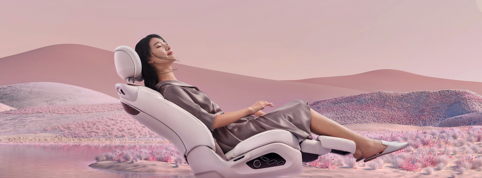 只要一点座椅侧边上的调节按键,副驾驶位置就会自动前移,而第二排老板位自动向车辆中线移动,同时靠背躺角向后展开,并且坐垫和脚托也会自然升起,这时靠背、座垫、腿部的平均压强基本接近于0,给到用户舒适的乘坐感受。