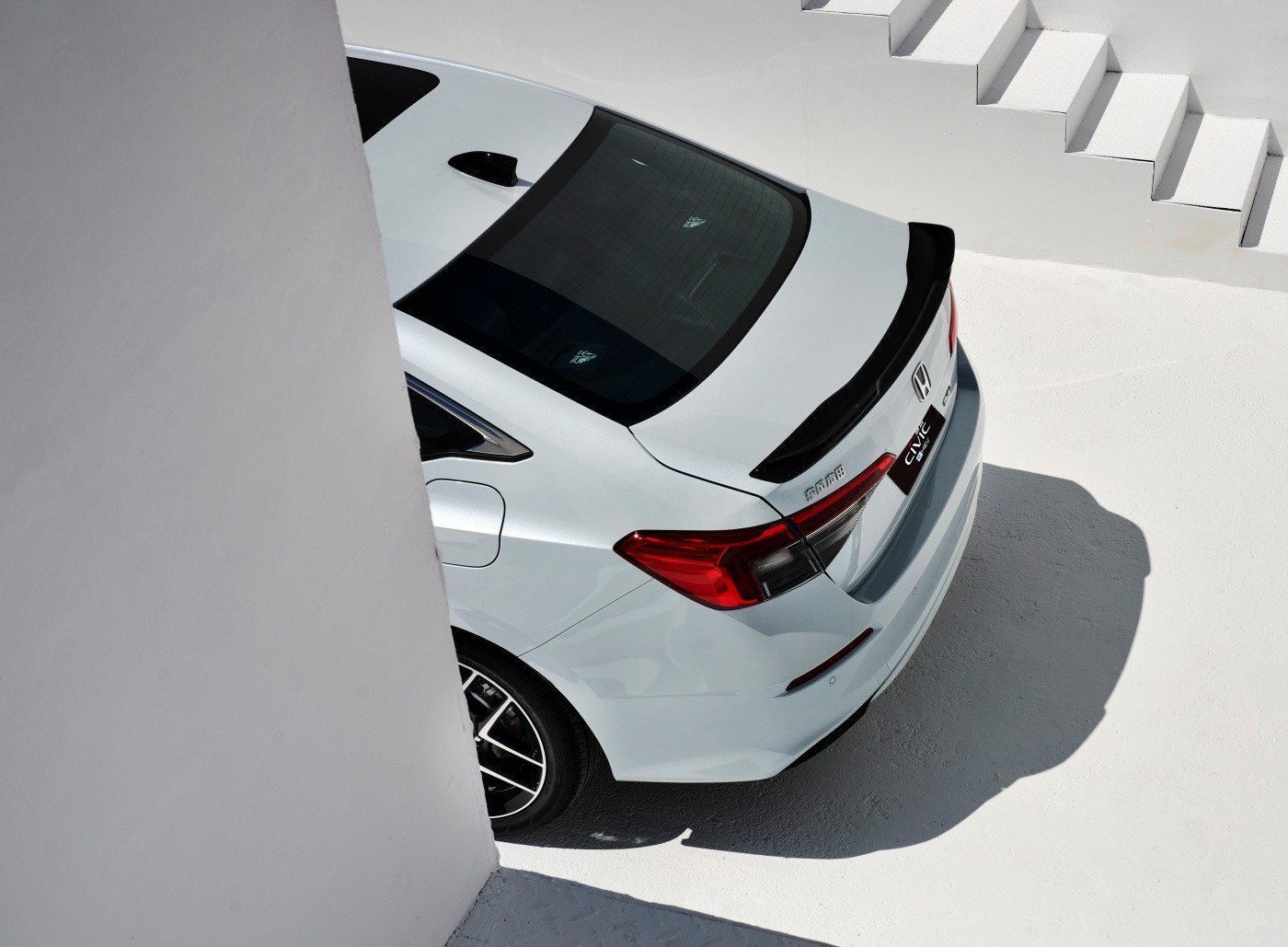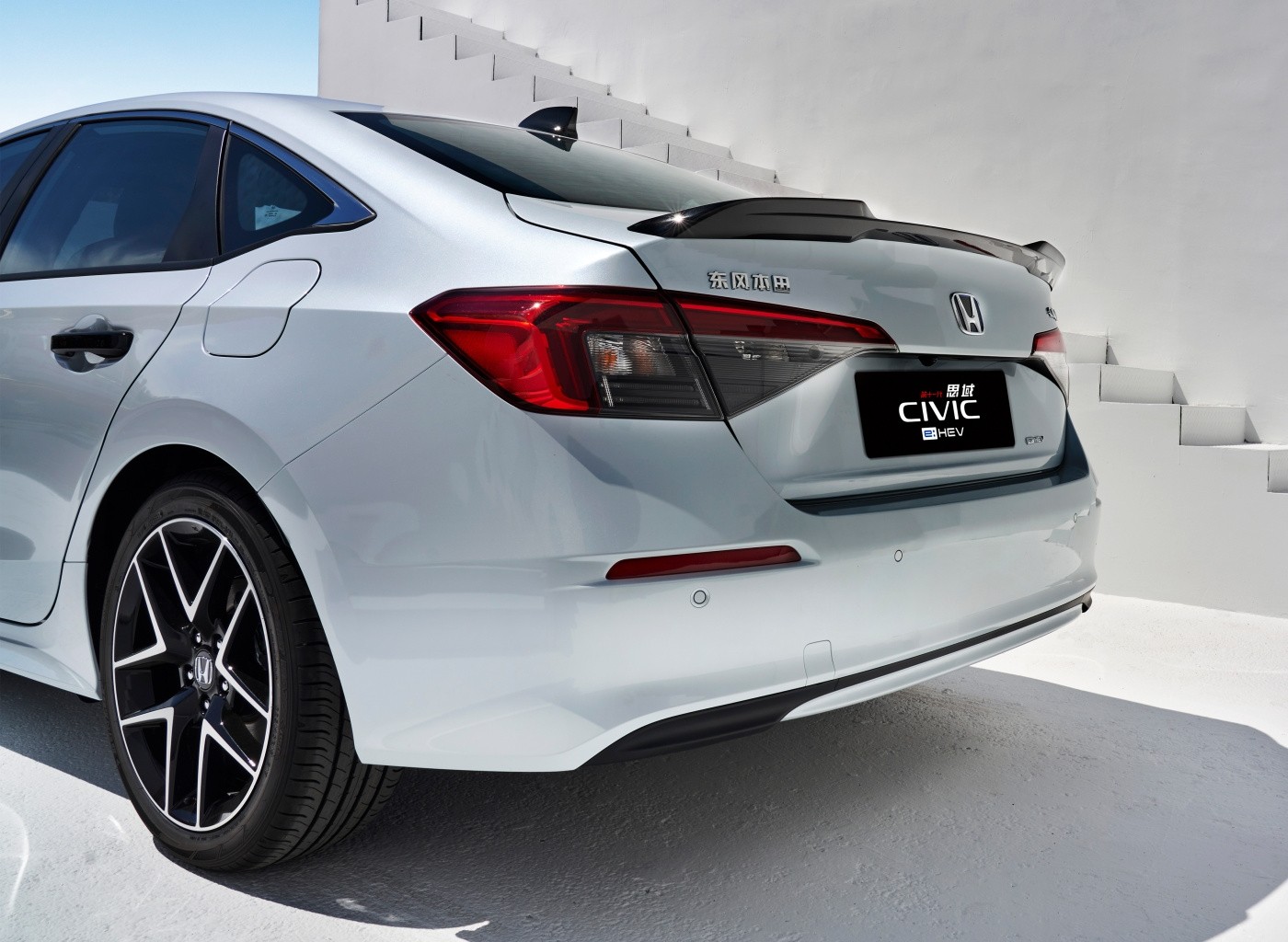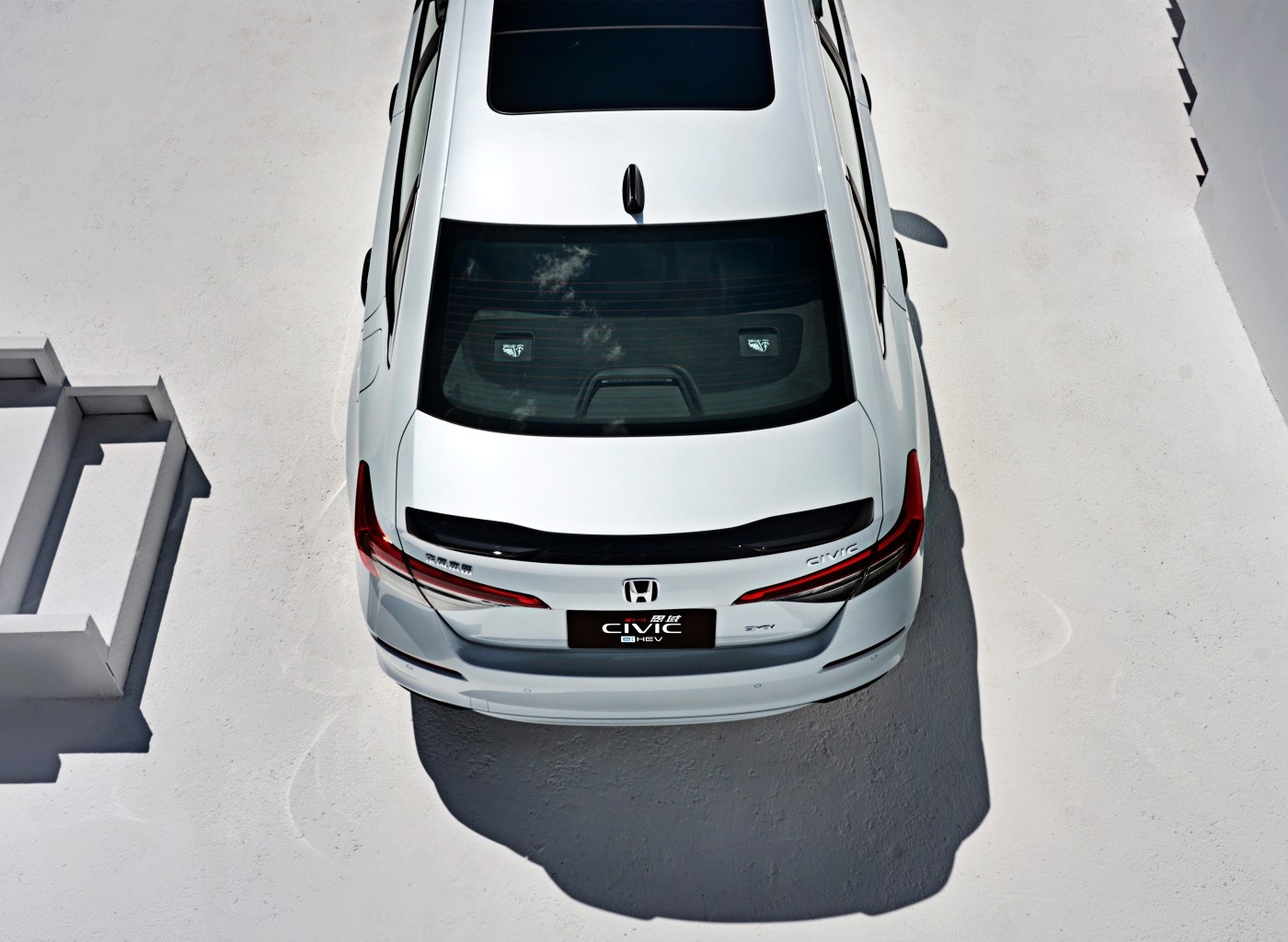 车尾同样没过多调整,不过尾门上方所配备的熏黑式小鸭尾是很显眼的存在,进一步提升了整车的运动感。此外,尾门右下方还配有e:HEV的标识,与燃油版车型有所区别,进一步展现出自身独特的身份。
