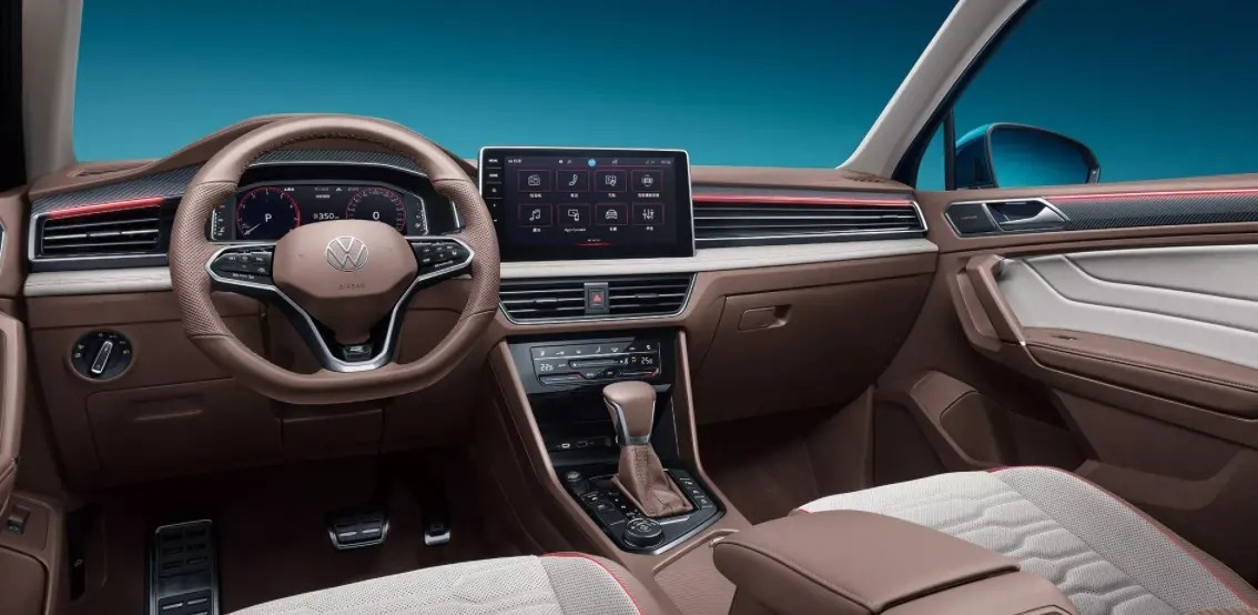 新款途观内饰同样基本与现有旧款车型保持一致。全液晶仪表盘+12英寸悬浮式中控屏搭配上三幅平底方向盘,再加上冠以银白色镀铬修饰的贯穿式的出风口,整体科技视觉是蛮符合当下主流审美。