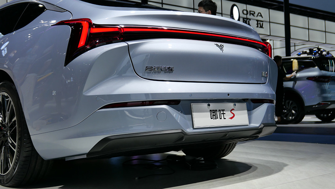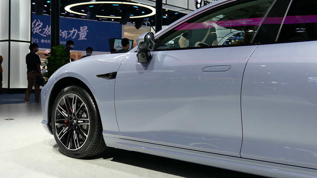 前脸部分采用了类似小鹏的“X”状的布局设计,不过没有选择流行的贯穿式LED日间行车灯设计,而是选择分段式设计,分开两侧的LED灯带在保持科幻的气质,同时也更加具有战斗力。