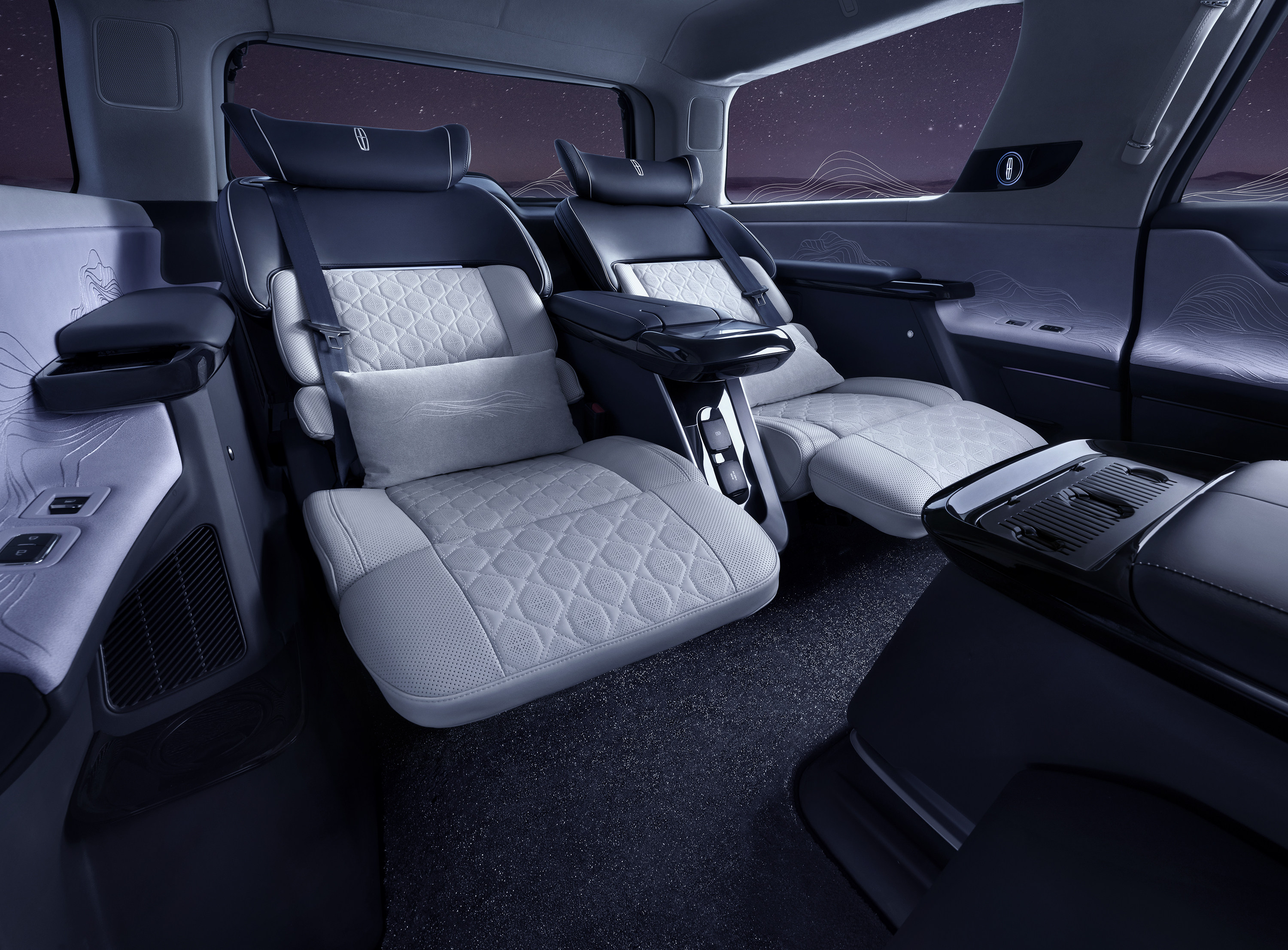 一方一隅,私享随心。座舱内的4种沉浸式私享场景模式,可根据车主的个性化需求随心调节,覆盖迎宾、休闲、娱乐、商务全场景,真正“懂您所需”,将美好呈至眼前。位于后排座舱的智能电视支持无线投屏功能,无论是商务会议或影音娱乐,都能随时随地开启,不受场地之约束,尽享尊贵私享空间。浩瀚星河,内蕴自显。座舱内采用高级天鹅绒星光地毯、至臻高级麂皮星海式律动星光顶与星河式透光呼吸饰条遥相呼应,满眼星辉璀璨,伸手即可摘星。