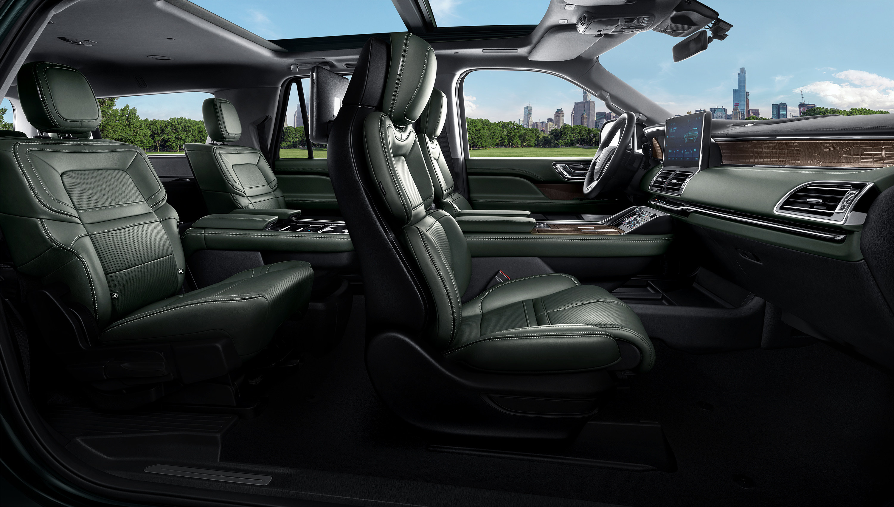 全新林肯领航员采用七座布局,兼顾同级至优的第三排空间,让每一位乘客都能尊享蕴藏于磅礴车身之内的宏阔空间,胸怀天地的豪华气场不彰自显。第三排座椅不仅拥有电动椅背调节,更有着丰富的舒享配置,乘坐体验媲美二排。超大的行李厢空间,全面满足客户日常多样化的储物需求。
