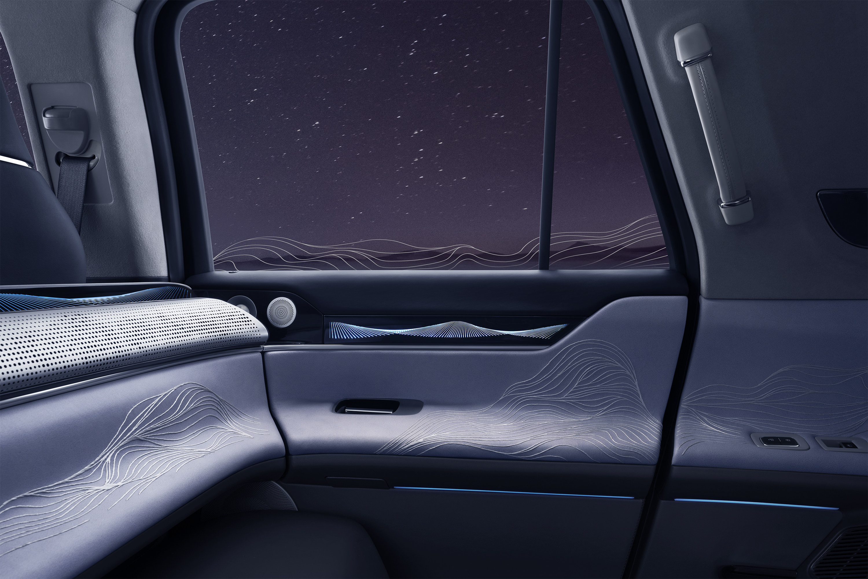 心中有山水,车内有真意。领航员壹号座舱内的真皮饰板以山水画手工刺绣点缀,以行云流水般的高超技法表达“仁者乐山,智者乐水”的精神追求。领航员壹号的至臻细节远不止于此,其采用的珍珠缝线工艺,以独特品味将灵感与创意融入每一处细节,重现珍珠的精巧造型,流露“大珠小珠落玉盘”的东方灵韵,承载期盼“时代领航者”事事圆满的隽永祝福。