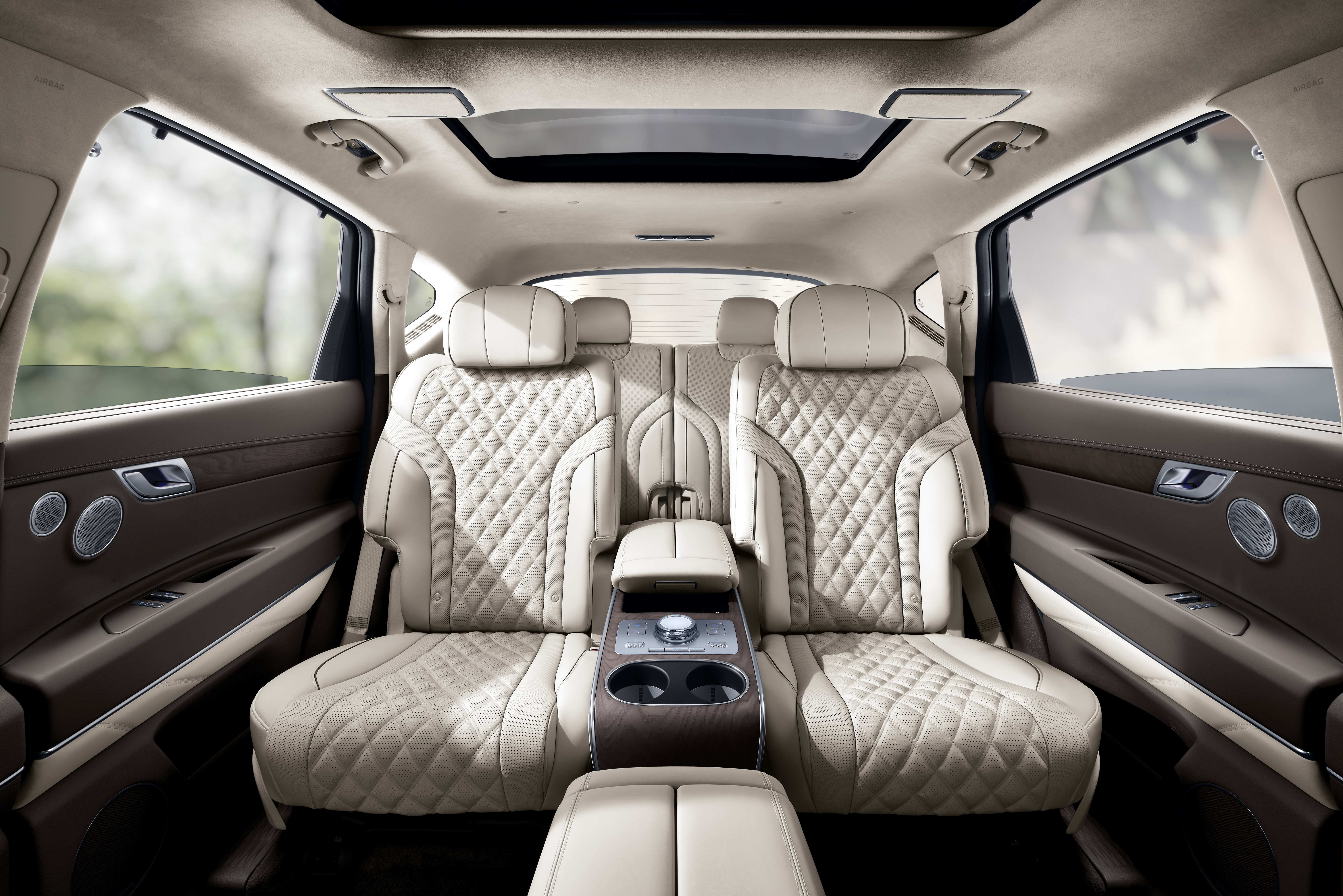 捷尼赛思GV80四座及六座车型可提供更高水准的豪华体验。第一排与第二排座椅采用高级Nappa真皮材质。第二排独立座椅可前后滑动并调整倾斜角度,带来前所未有的惬意空间。通过一键放松模式,第二排乘客可轻松将座椅调整到最舒适、最符合个性的状态。此外,航空式头枕可提供额外的头部和颈部支撑,令乘坐体验更为舒适。