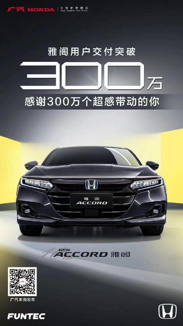 广汽本田亮眼的满意度成绩,在车型销量中得到了进一步验证。近期,广汽本田中型车雅阁迎来国内用户交付第300万辆,再破国内日系中高级轿车的用户交付纪录,同时创造了广汽集团和Honda在华销售车型率先达成300万辆的用户交付纪录。
