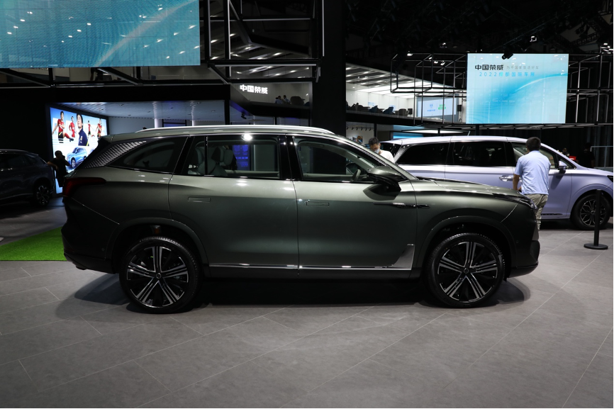 它也很好地传承了荣威最新SUV的设计元素,弹出式门把手并没有缺席,轮毂还是夸张的21英寸,整体来看不仅精致还非常霸气硬朗。