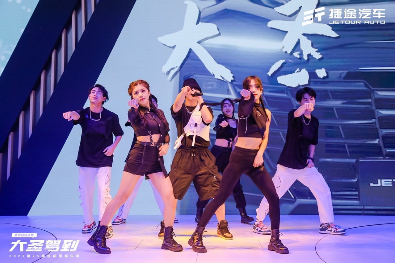 活动当天,在一段酷炫的开场RAP歌舞表演中“大圣驾到”,犀利的登场方式也将本次捷途汽车展位的气氛带到最高潮。